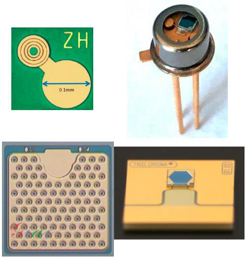 除了上面的基本知識(shí),這些與LED技術(shù)相似的工藝術(shù)語(yǔ)你也必須知道,我在此不再多解釋,他們是MOCVD(有機(jī)氣相外延沉積)與MBE(分子束外延)外延技術(shù),光刻技術(shù)決定芯片圖形與尺寸,ICP-RIE(電感耦合反應(yīng)離子刻蝕)技術(shù)刻蝕出發(fā)光平臺(tái)(Mesa),氧化工藝讓諧振腔定義出最佳的VCSEL光電特性,鈍化絕緣工藝讓暴露的半導(dǎo)體材料不受空氣與水汽影響可靠度,最后研磨與切割變成一顆顆芯片,再進(jìn)行測(cè)試與出貨給封裝廠,由于結(jié)構(gòu)上跟紅黃LED芯片類似,是上下電極垂直結(jié)構(gòu),所以一般是先測(cè)試芯片特性再進(jìn)行切割與最后分選。圖4就是VCSEL的芯片與封裝示意圖,做LED的人有沒(méi)有似曾相識(shí)的感覺(jué)呢?